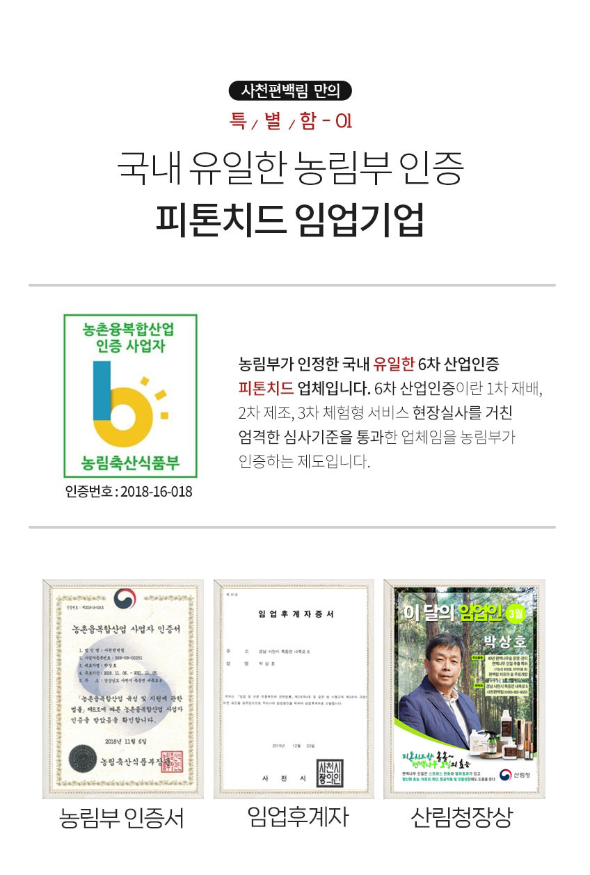 국내유일 피톤치드 인증 업체