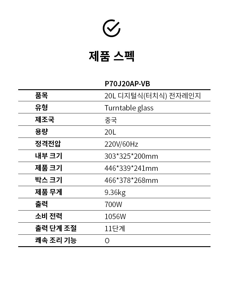 디자인이 군더더기 없이 깔끔해서 주방에 잘 어울려요? 터치 방식이라 조작이 간편하고, 반응 속도도 빠른 편이에요. 20L 용량이라 자취생이나 저같은 1~2인 가구에 딱 알맞은 크기고, 간단한 해동이나 데우기 용도로 쓰기에 충분해요!! 소음도 크지 않고, 내부 청소도 편해서 만족스럽습니다. 실용적이고 깔끔한 전자레인지를 찾는 분께 추천하고 싶어요!!
