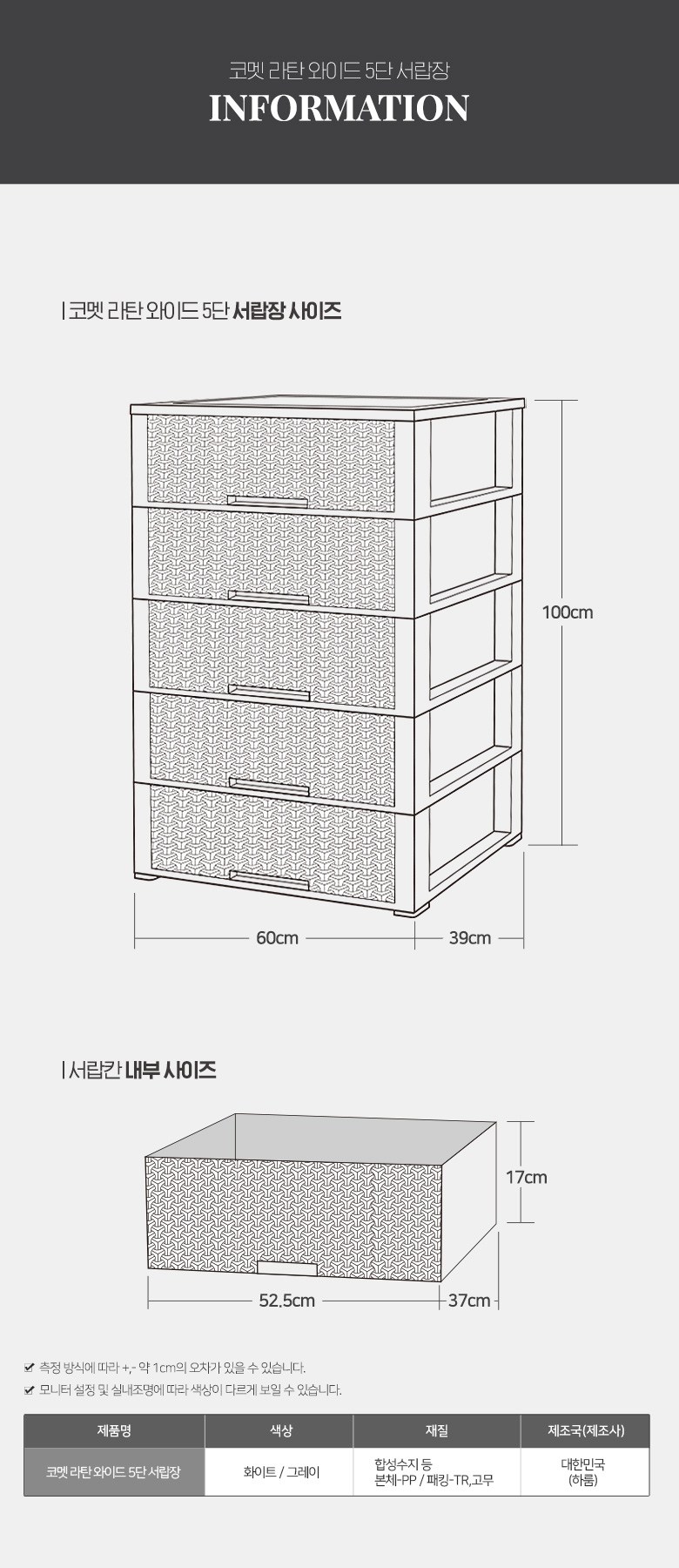 코멧 5단 라탄 서랍장 와이드 600